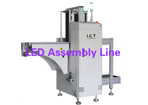 This equipment is located between SMT machines to improve working efficiency by buffering PCB.