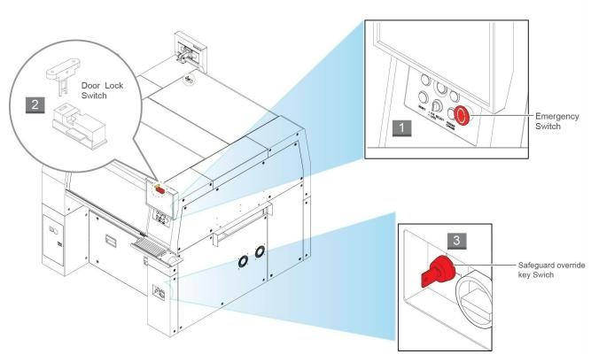 The Safeguard override key switch must be used by the designated responsible personnel. It must be carefully used for machine operation.